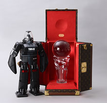 In 2006 this robot won the humanoid league at the RoboCup World Championship for the third straight year. This photo shows the robot next to the cup it won for best humanoid.