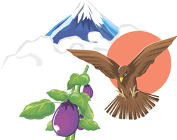 相传有三个梦是“最好”的梦,这三个梦按照顺序分别为:富士山、老鹰和茄子。有很多种理论对为什么梦见这三样东西是幸运的进行了解释,其中有一种认为是因为这三样东西相对而言都比较高。富士山是日本最高的山脉,它的旁边还耸立着另外一座名为爱鹰山的山脉,其高度相当于富士山的一半。之所以将茄子也加进来,人们认为是为了取笑它在古时候的昂贵价格。