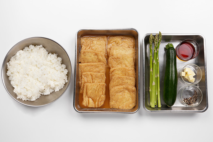 Asparagus, Zucchini and Butter Soy Sauce Inari-zushi Recipe