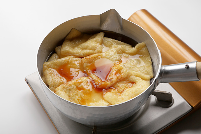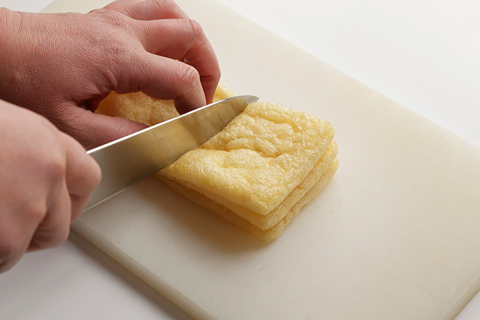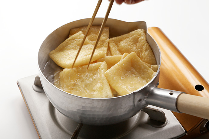 Note: Removing excess oil from the abura-agé will make it less oily and help it to absorb flavor more easily.