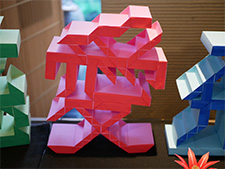 El Sr. Katsuhiro Sonta es un experto en origami y está especializado en armar letras con origami. Da clases sobre cómo usar las hojas de papel rectangulares para elaborar creaciones. Generalmente, el origami se hace con hojas de papel cuadradas, por lo que es inusual usar papeles de esta forma. Todos los alumnos en la clase trabajan seriamente para elaborar los modelos difíciles. Antes de trabajar en elaborar sus creaciones, los alumnos tienen que dibujar los planos por sí mismos para planificar cómo realizar los plegados. Es realmente grande la alegría al lograr crear con éxito estos modelos desafiantes.