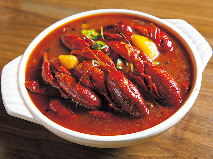 Okubo is home to numerous Chinese restaurants that serve local dishes from Yanbian, Hebei, and other regions in China. They attract many customers looking for a taste of home. Here you can find a variety of Chinese cuisines: from the famous grilled lamb skewers of Northeast China ①, to the crayfish dishes originating in Hunan ②, which recently have become all the rage, to Chinese mitten crab ③, which is very popular in Japan. (Horaishu)