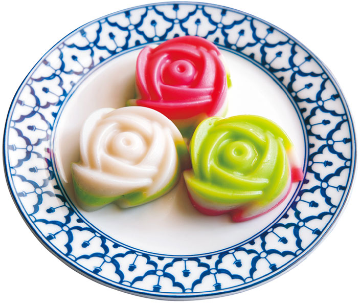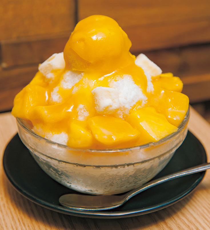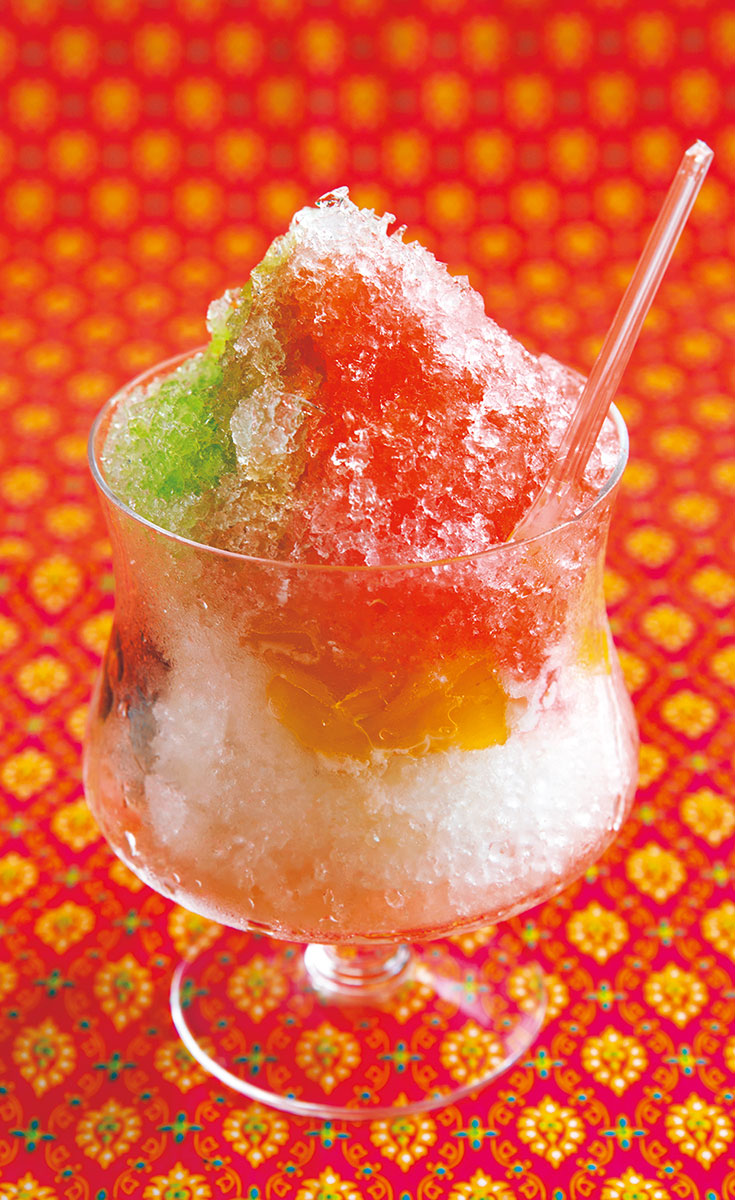 Delicias tales como hielo raspado aderezado con siropes multicolores ①, dulces hechos al vapor elaborados con leche de coco mezclada con harina de arroz ②, y cajas de comida para llevar con pollo guisado y arroz con azafrán ③ son todos apreciados por innumerables aficionados, de todas las nacionalidades. (Rung Ruen)