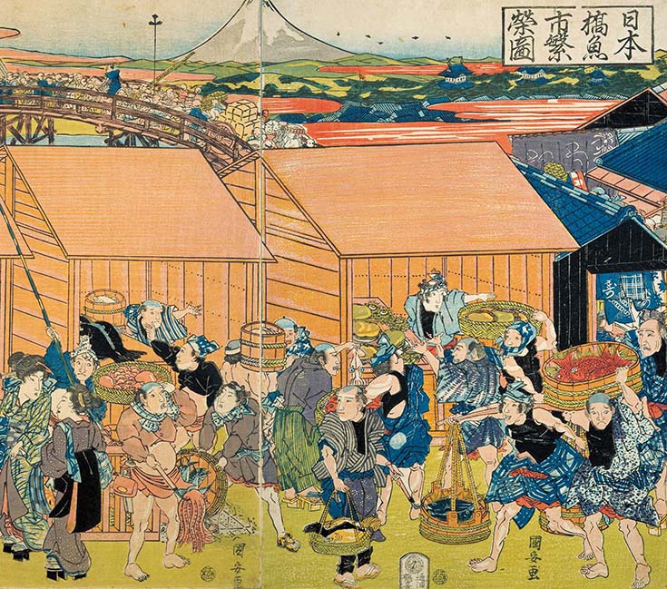 歌川国安的《日本桥鱼市繁荣图》(局部)