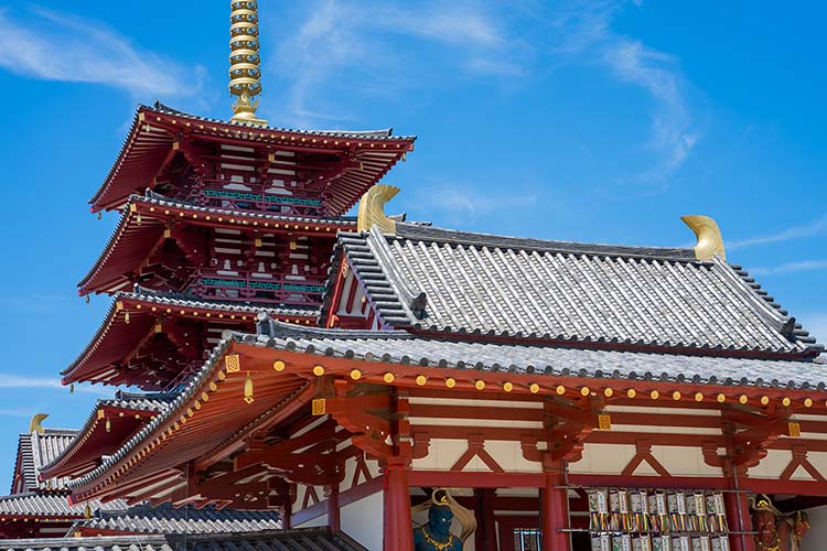 معبد شيتن – نو - جي هو أول معبد في اليابان تتولى الحكومة إدارته بنفسها وقد اشتركت شركة كونغو – غومي أيضًا في تجديد هذا المعبد في أوائل القرن العشرين. (الصورة:PIXTA)