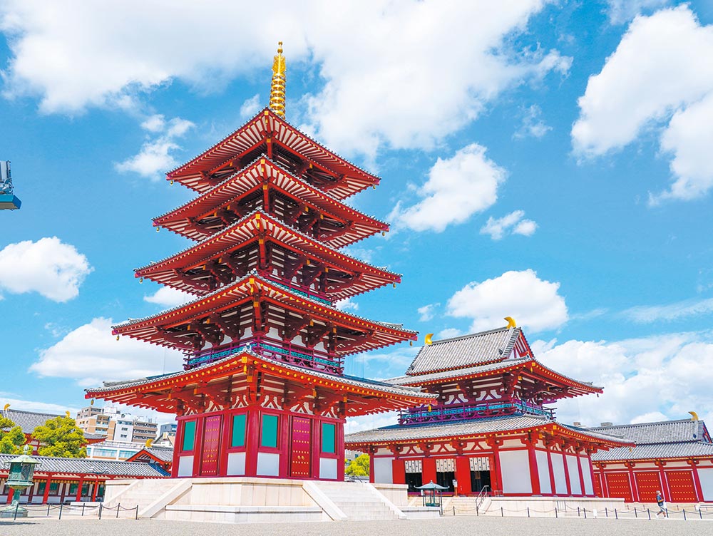لقد كان ميناء نانيواتسو، الذي تأسس في القرن الخامس تقريبًا، بداية تحول أوساكا تاريخياً إلى ملتقى طرق للتبادل. وباعتباره بوابة إلى العالم، كان ميناء نانيواتسو بمثابة نقطة انطلاق للبعثات الدبلوماسية في ذلك الوقت. وقد رحب هذا الميناء التجاري المزدهر بالعديد من الزوار الأجانب ويقال إنه ازدهر كمركز رئيسي للتفاعل العالمي. في محيط ميناء نانيواتسو، تم إنشاء أول معبد تقوم الدولة ببنائه في اليابان، وهو معبد شيتينوجي. في ذلك الوقت، ومع انخراط أوساكا في النظرة العالمية الجديدة للبوذية وتبنيها لها تدريجيًا، بدأت أسس الثقافة الفريدة للمدينة تتشكل.