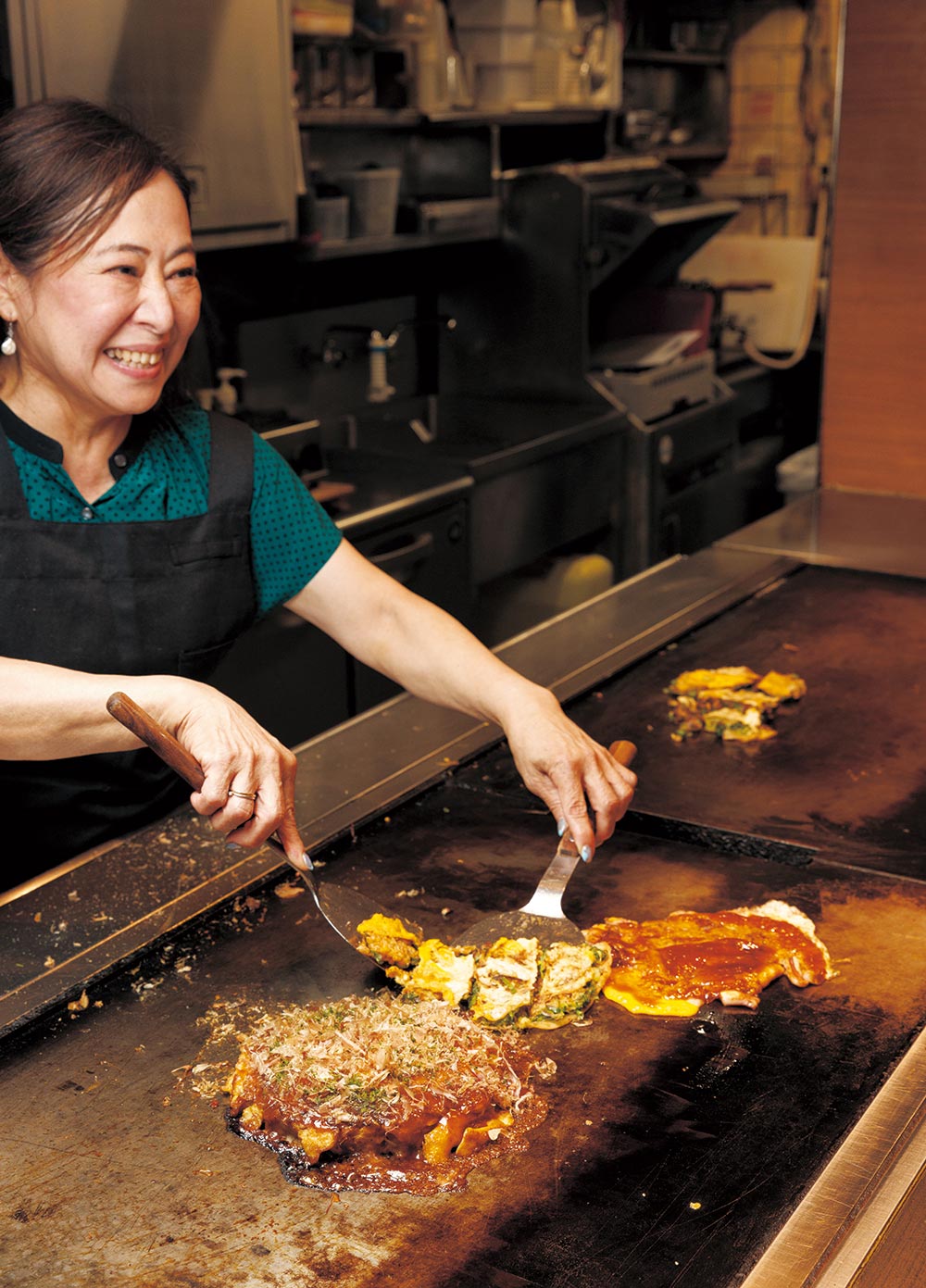 Servido com molho agridoce, o okonomiyaki é um aglomerado de vários elementos, como carne ou frutos do mar, massa de farinha de trigo com caldo dashi e uma generosa quantidade de repolho picado. A mistura é frita, então, na chapa para compor porções achatadas, em forma de panqueca. Uma teoria predominante, não totalmente comprovada, diz que inicialmente a iguaria era vendida em barraquinhas de rua na Região de Kansai por volta do período da 2ª Guerra Mundial. Feita com ingredientes favoritos que estejam à mão, é muito apreciada no lar e em numerosas lanchonetes ou casas comerciais da cidade especializadas no prato. O okonomiyaki é uma iguaria de frequente consumo no dia a dia de Osaka.