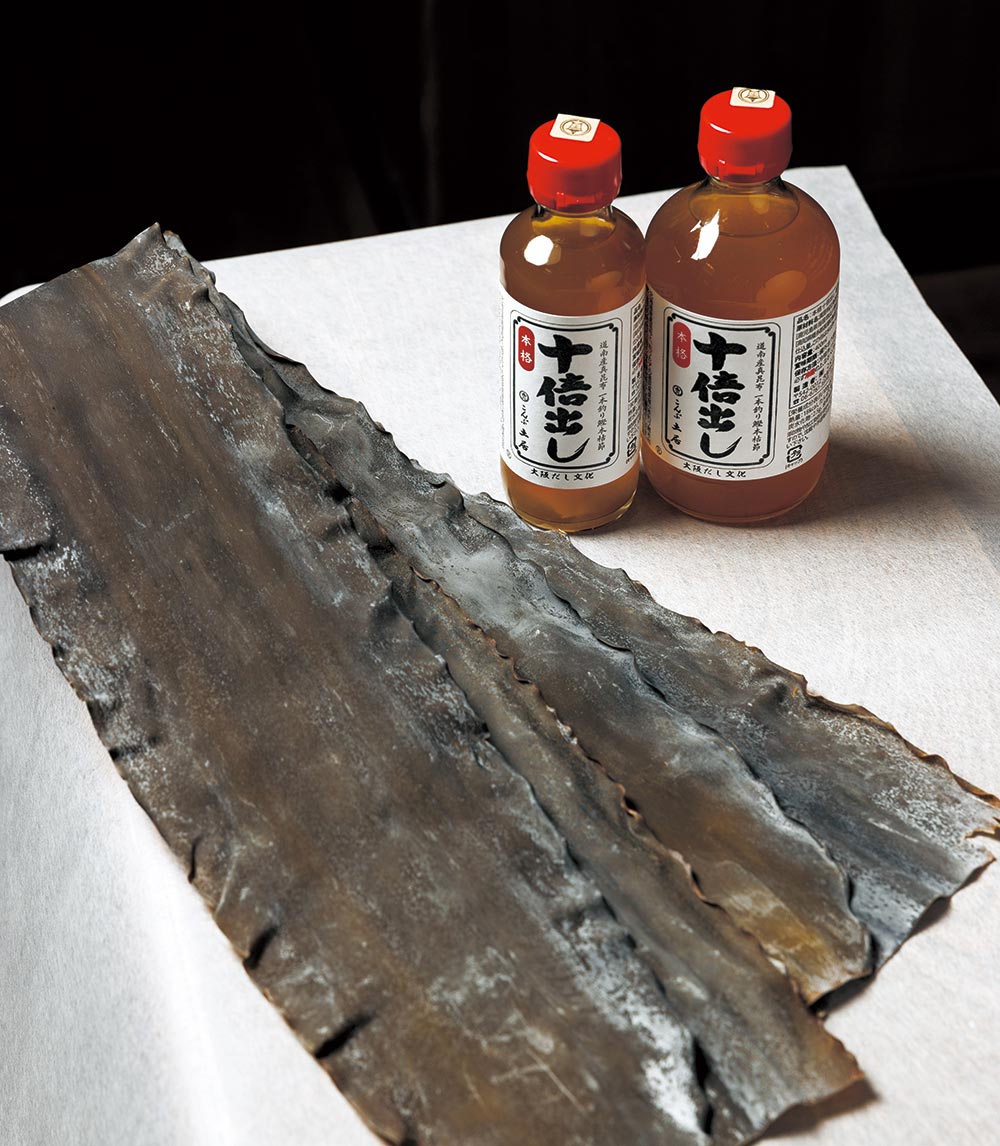“昆布土居”,是1903年创业的老字号海带专营店。第四代店主土居纯一,以独到的识货眼光严格进货,经销深度熟成的高质量海带。土居店主亲自前往产地北海道,并为生产商提供援助。近年来,因渔民后继乏人以及全球暖化的原因,海带产量在减少,加之饮食生活的变化,海带的存在感日渐淡薄,土居店主为此感到遗憾。“不过,如果懂得海带的真正风味,就会明白必须要让这种文化留存下去。”精心熬制的海带高汤,味甜品高,自然的风味沁人心脾。“海带DASHI是大阪乃至日本所拥有的享誉世界的文化。首先要让大家了解它的优点。”
