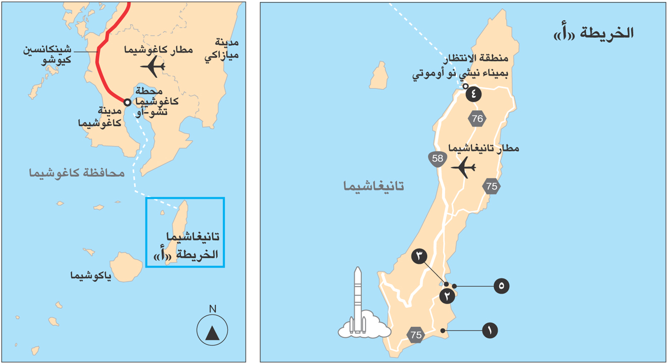 حوالي ٤٠ دقيقة من مطار كاغوشيما إلى مطار تانيغاشيما