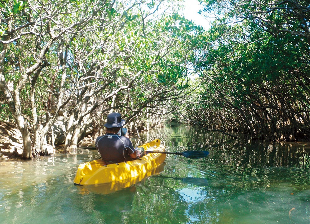 皮艇探险是一个很受欢迎的游览项目,人们乘坐皮艇在红树林的隧道中穿行。(摄影:种子岛观光BLUE PEACE)