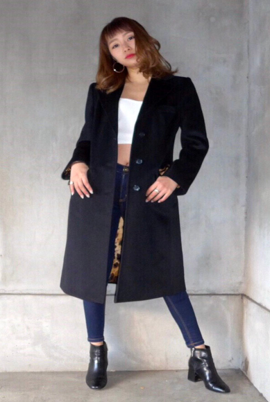 长大衣配以短内衣和紧身裤,尽显帅气