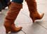 Until last year, long boots with simple designs that gave the legs a sleek silhouette were all the rage, but this year lavishly ornamented or Wild West-inspired boots are flying off the shelves. The new must-have footwear is being adopted in different ways by women in different age groups. |