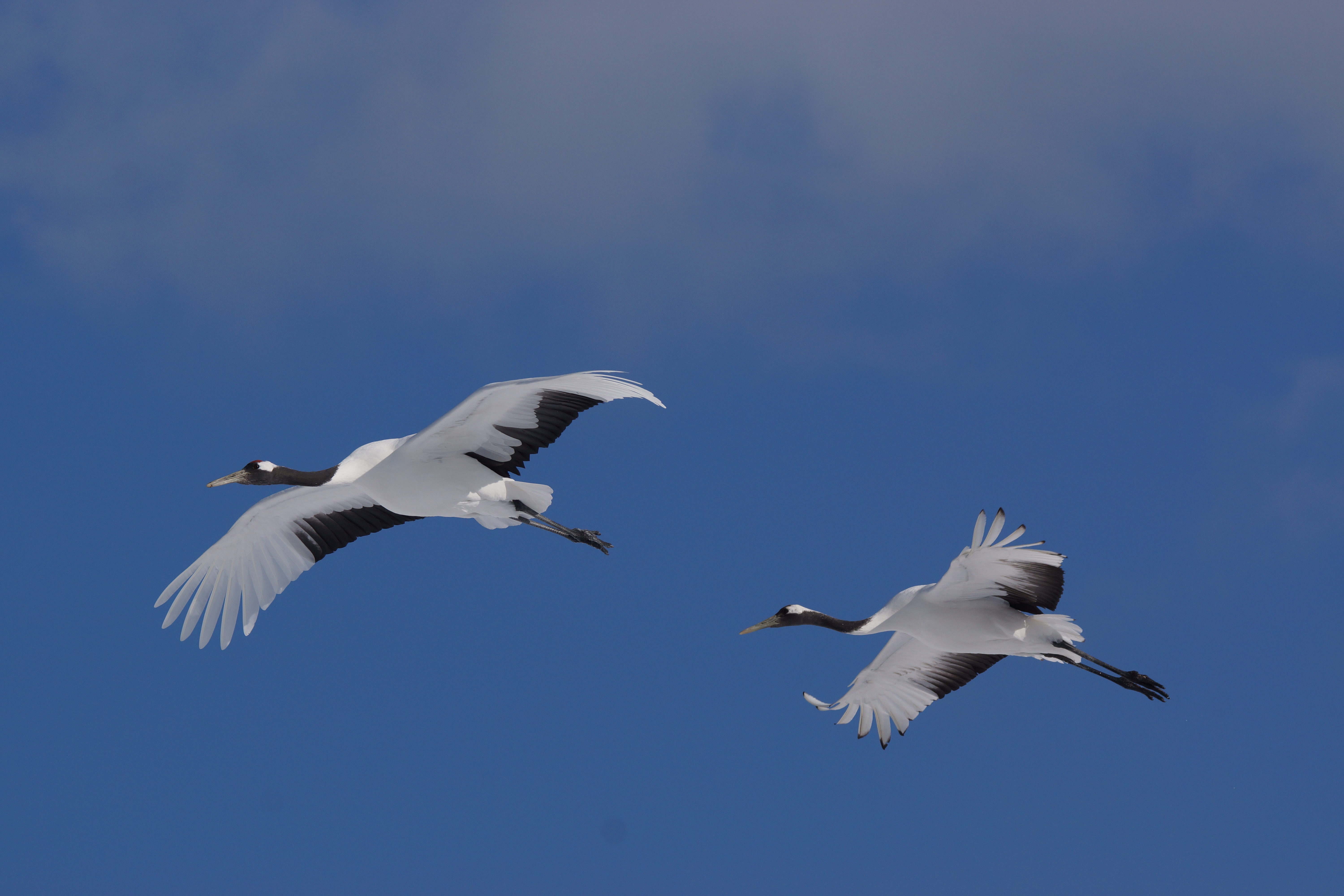 Es posible que puedan ver a los animales que habitan en Hokkaido. Las grullas de manchuria sobrevolando (izquierda) y ciervos ezo
